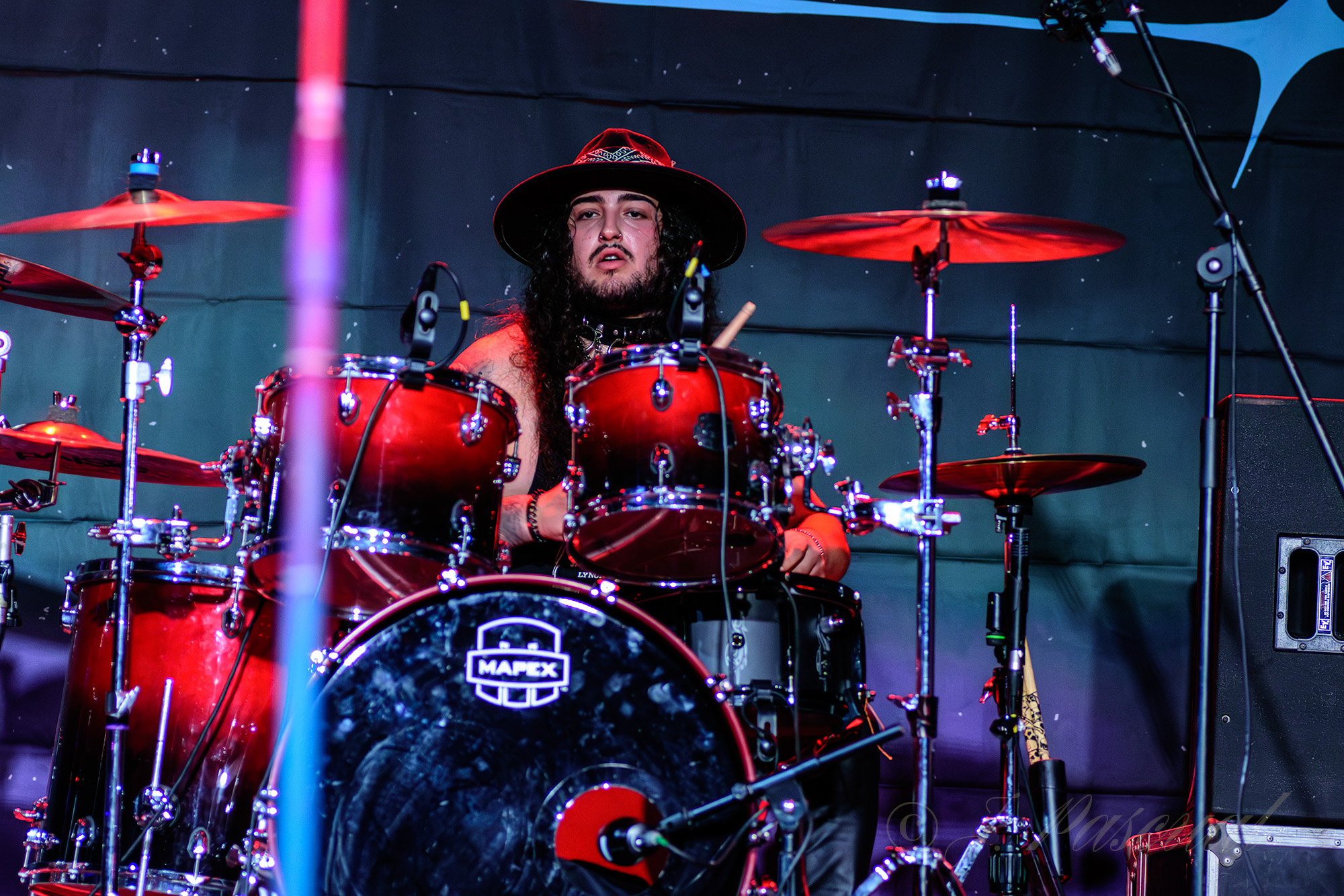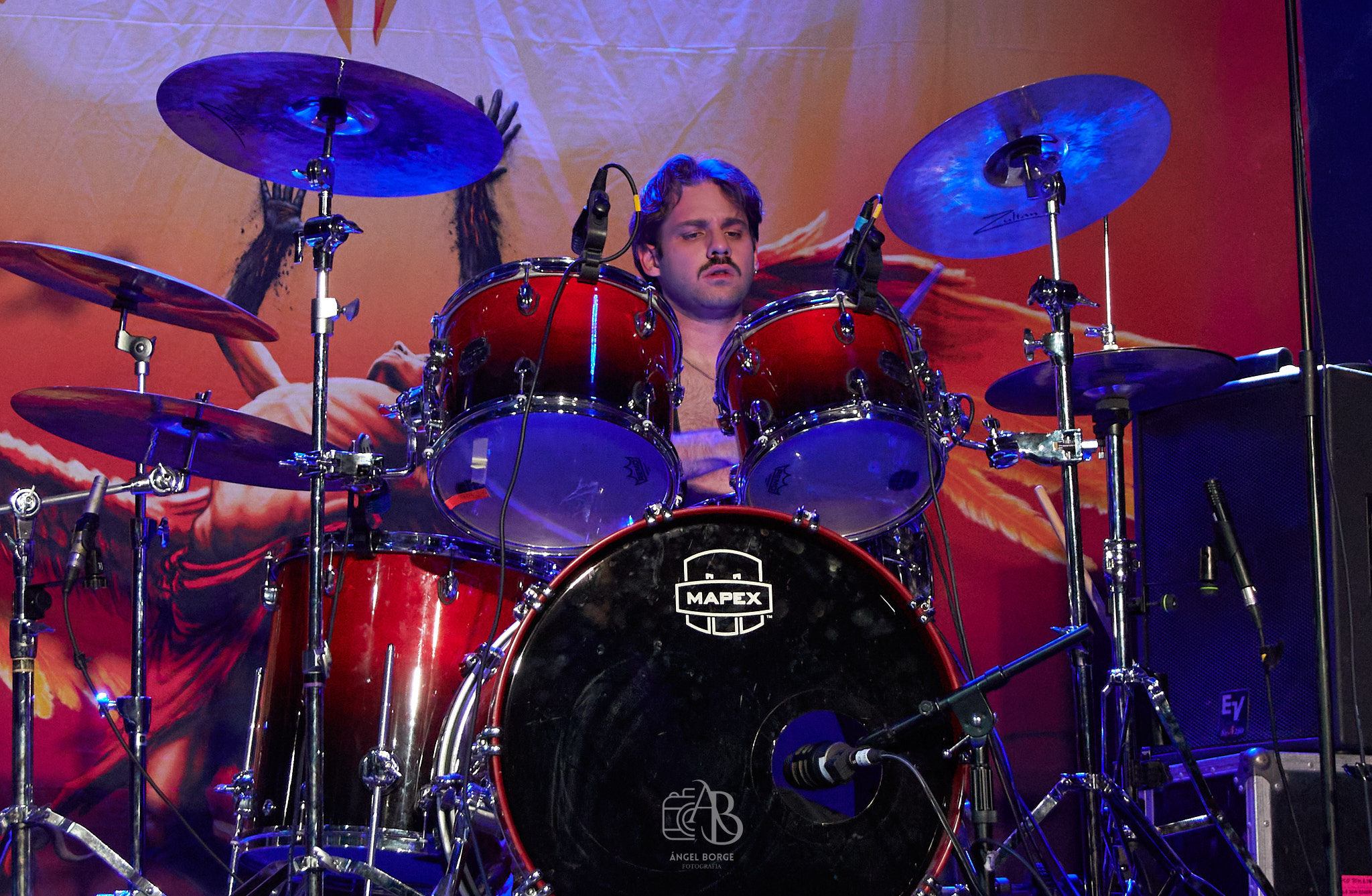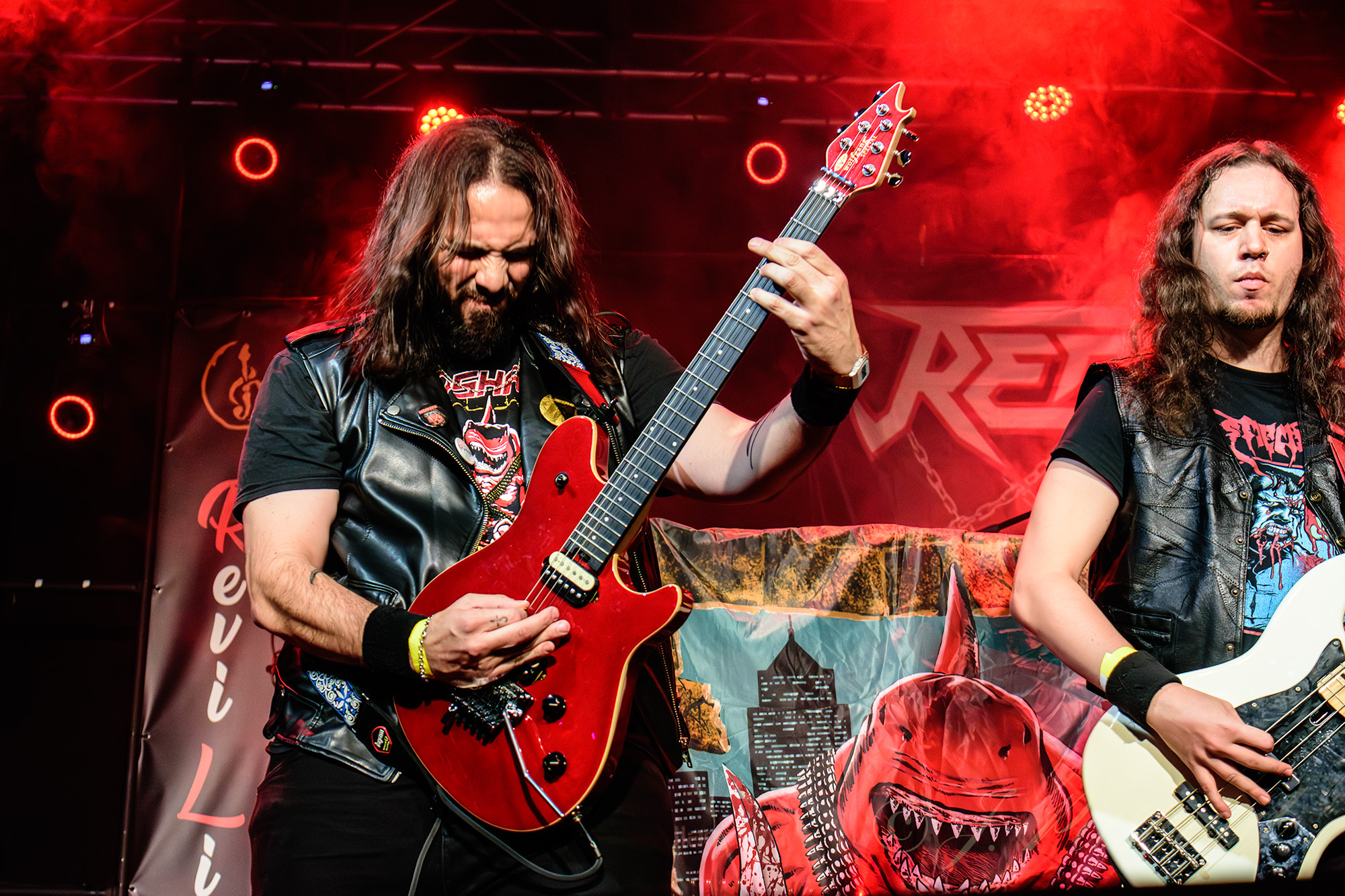 De nuevo un veloz cambio de equipo y ya teníamos sobre el escenario a los chicos de REDSHARK llegados desde tierras catalanas, la banda conformada por Pau a la voz, Philips y Javier Bono a las guitarras, Chris al bajo y Alan a la batería, llegaba pletórica y dispuesta a convencer con su apuesta por el Heavy/Speed Metal, no solo a los incondicionales de la banda, sino también al numeroso público que había acudido a la cita, con temas como «Kill Your Idoll» o «Digital Race» objetivo más que cumplido a tenor de los movimientos de cabeza y la respuesta del público, permitiéndonos también ver los derroteros en los que camina la banda, hacia un sonido aún más duro, con un pequeño adelanto de lo que será su próximo trabajo Sudden Impact «Beware The Shark», para dar por finalizada su descarga con «Stronger Than Ever».