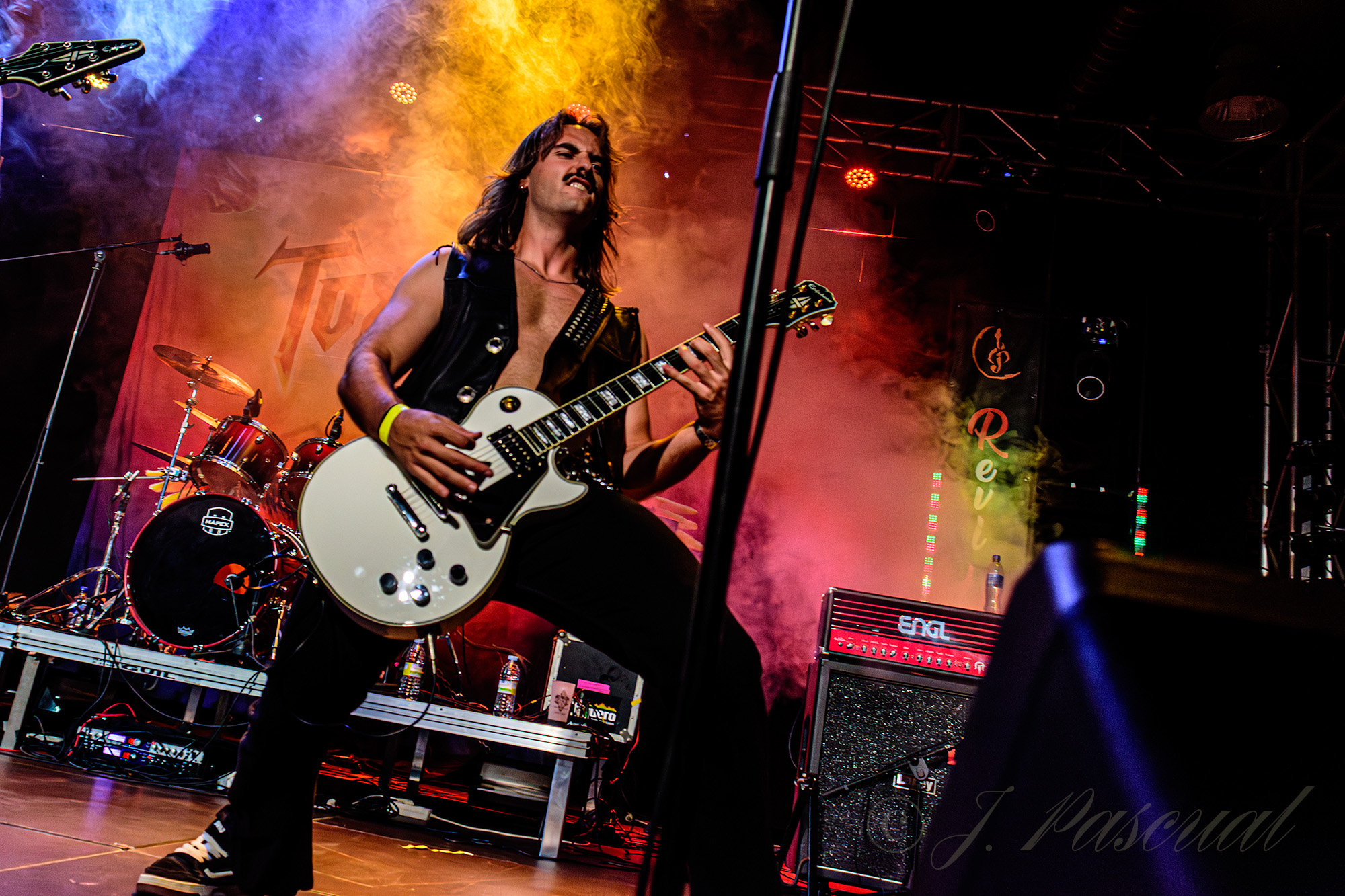 Procedentes de la vecina Portugal llegaban los terceros protagonistas de la noche TOXIKULL otra banda con un gran futuro a la vista dentro del Heavy metal aderezado por una buena dosis de Speed metal, la formación compuesta por Lex Thunder a la voz y guitarra, Michael Blade a la guitarra, Antim (The Viking) al bajo y Tommy 666 a la batería, que tras una pequeña intro arrancarían ya a pleno rendimiento con «Night Shadows» lo que sería un auténtico recital de energía que pronto se contagiaría a toda la sala, con temas tan potentes como «Battle Dogs» o «Killer Nigth» con las guitarras despachando sin parar llamativos solos y contagiosos riff, desatando algún que otro pongo, para culminar ya en la recta final con un homenaje al inmortal de Lemmy, con una atronadora versión del clásico de MOTÖRHEAD «Iron Fist» que hizo temblar los cimientos de la Revi, antes de acabar ya con «Metal Defender» dejando sin lugar a dudas un buen regusto entre los presentes y expectación ante lo que deparara ese nuevo trabajo que probablemente a la salida de estas líneas estén ya empezando a grabar.